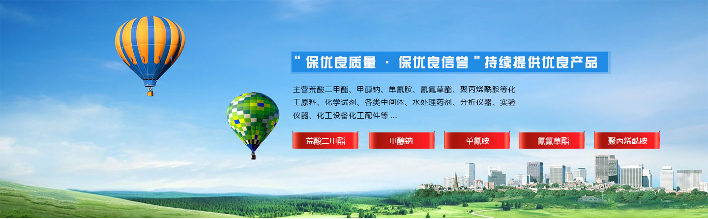主營荒酸二甲酯、甲醇鈉、單氰胺、氰氟草酯、聚丙烯酰胺等化工原料、化學試劑、各類中間體、水處理藥劑、分析儀器、實驗儀器、化工設備化工配件等